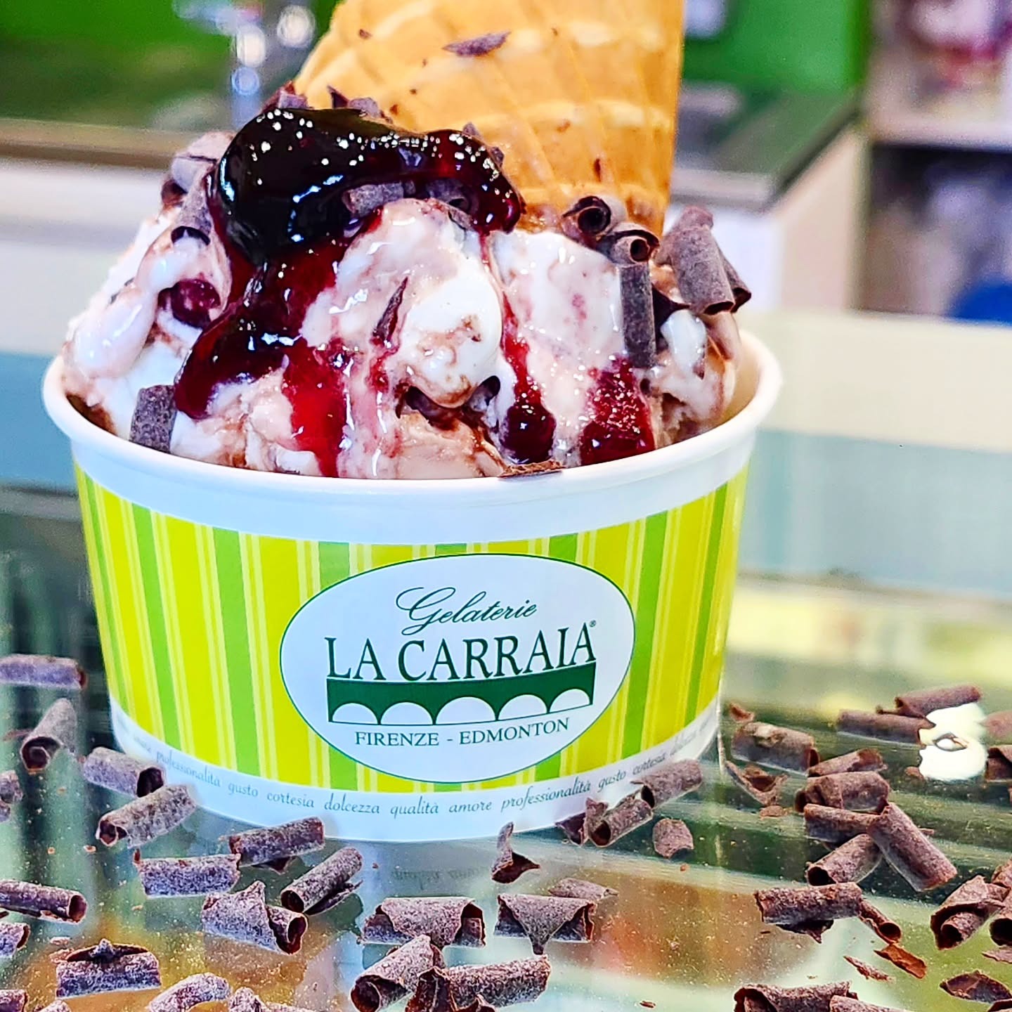 This gelato takes you back to your childhood days of visiting grandma’s house and she’s sneaking you some delicious lemon cream cookies. Biscotti gelato with little chunks of lemon cookies and a sweet lemon swirl.